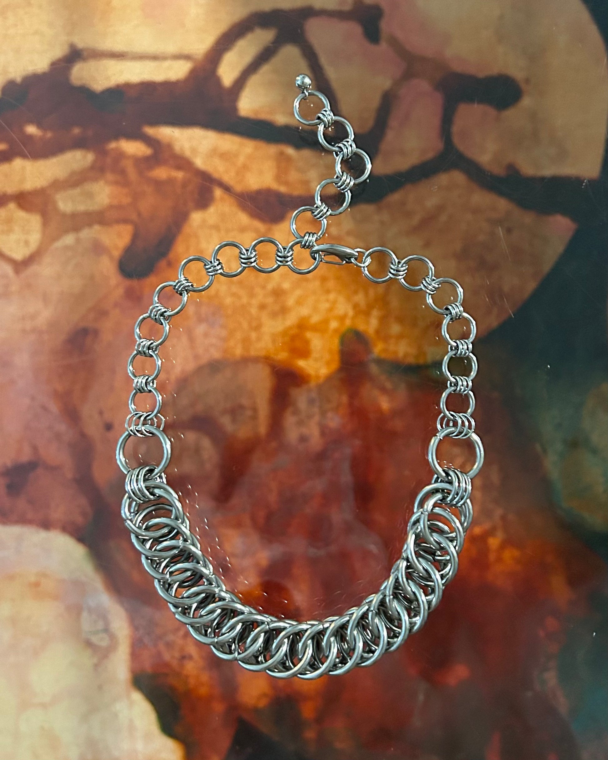 Keep in mind that links are not soldered closed, so super rough handling may pop a ring open and compromise the piece. Handle with care and reverence. If your piece is ever in need of repair, just send me a message. <3